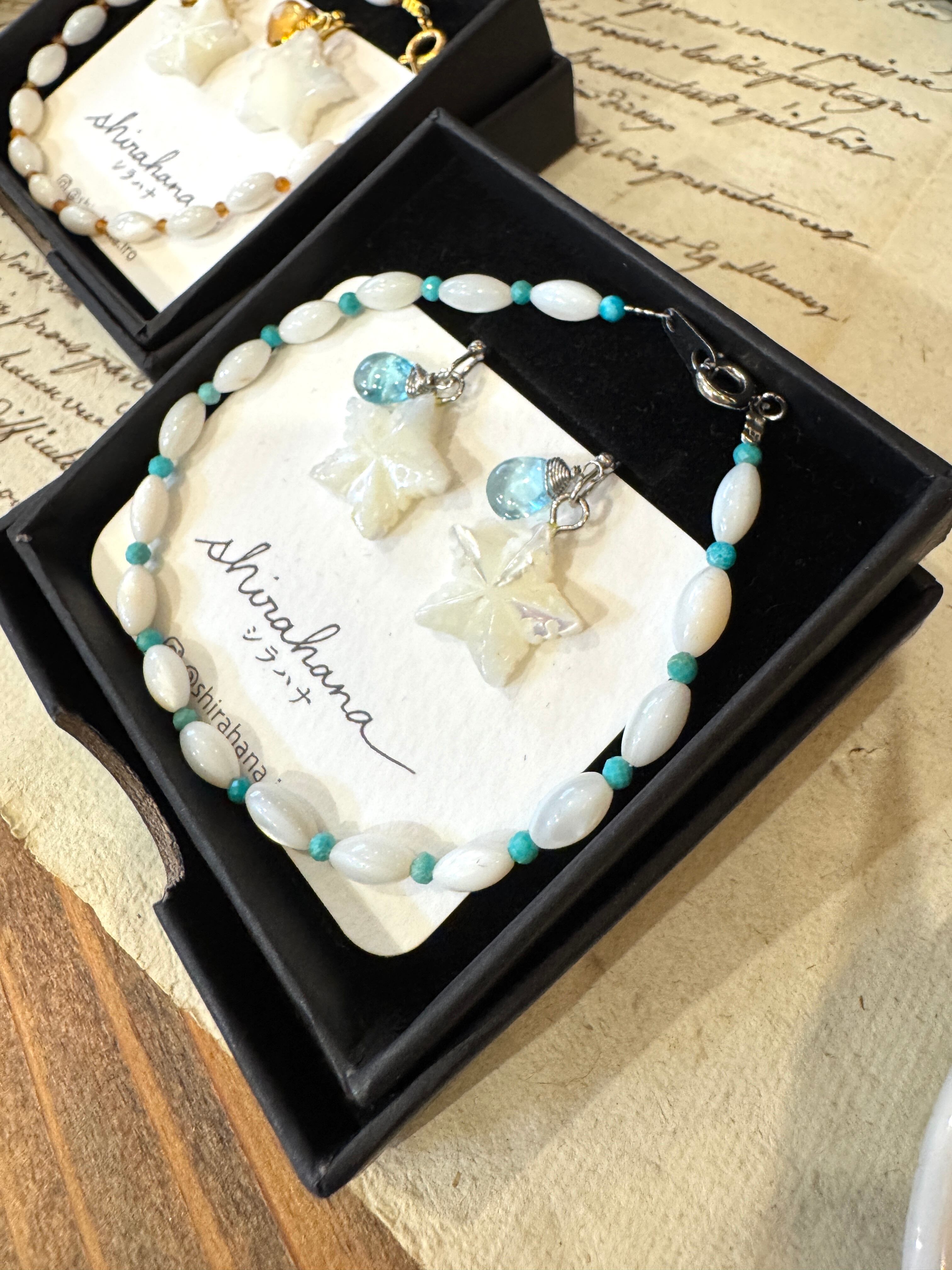 このピアスとブレスレットのセットの魅力は、厳選された高品質な天然石と、丁寧な仕立てにあります。優雅な色合いや独自のテクスチャーが、見る人の心を引き寄せることでしょう。特別な思いを込めた贈り物としても、一生の宝物になること間違いありません。