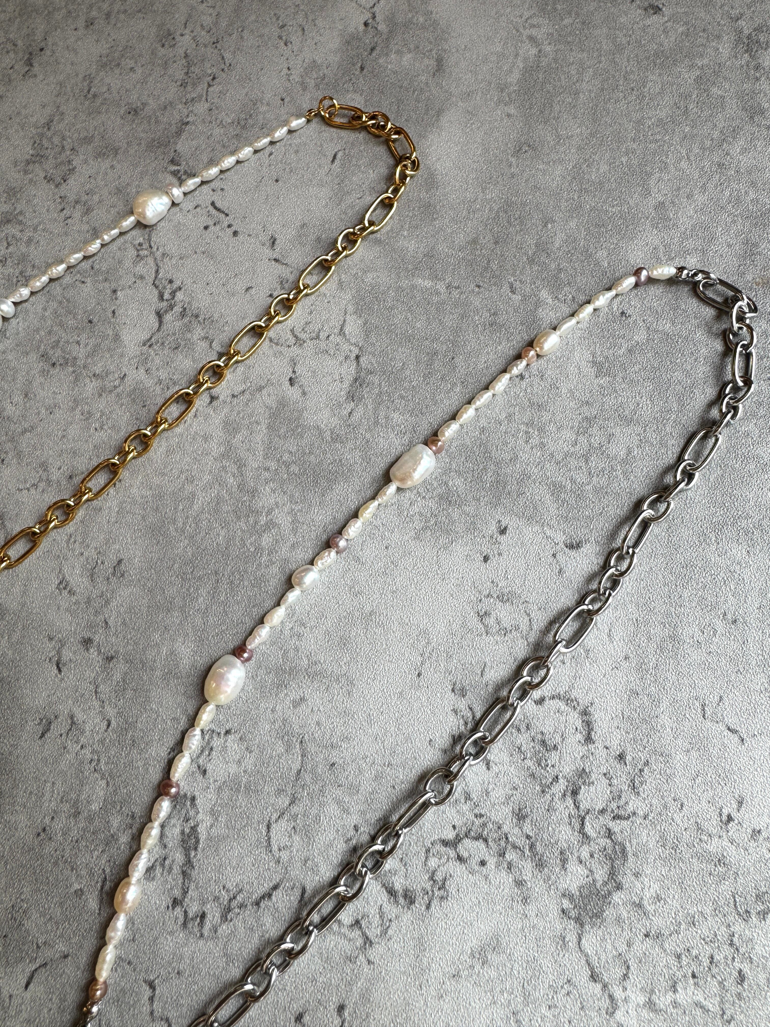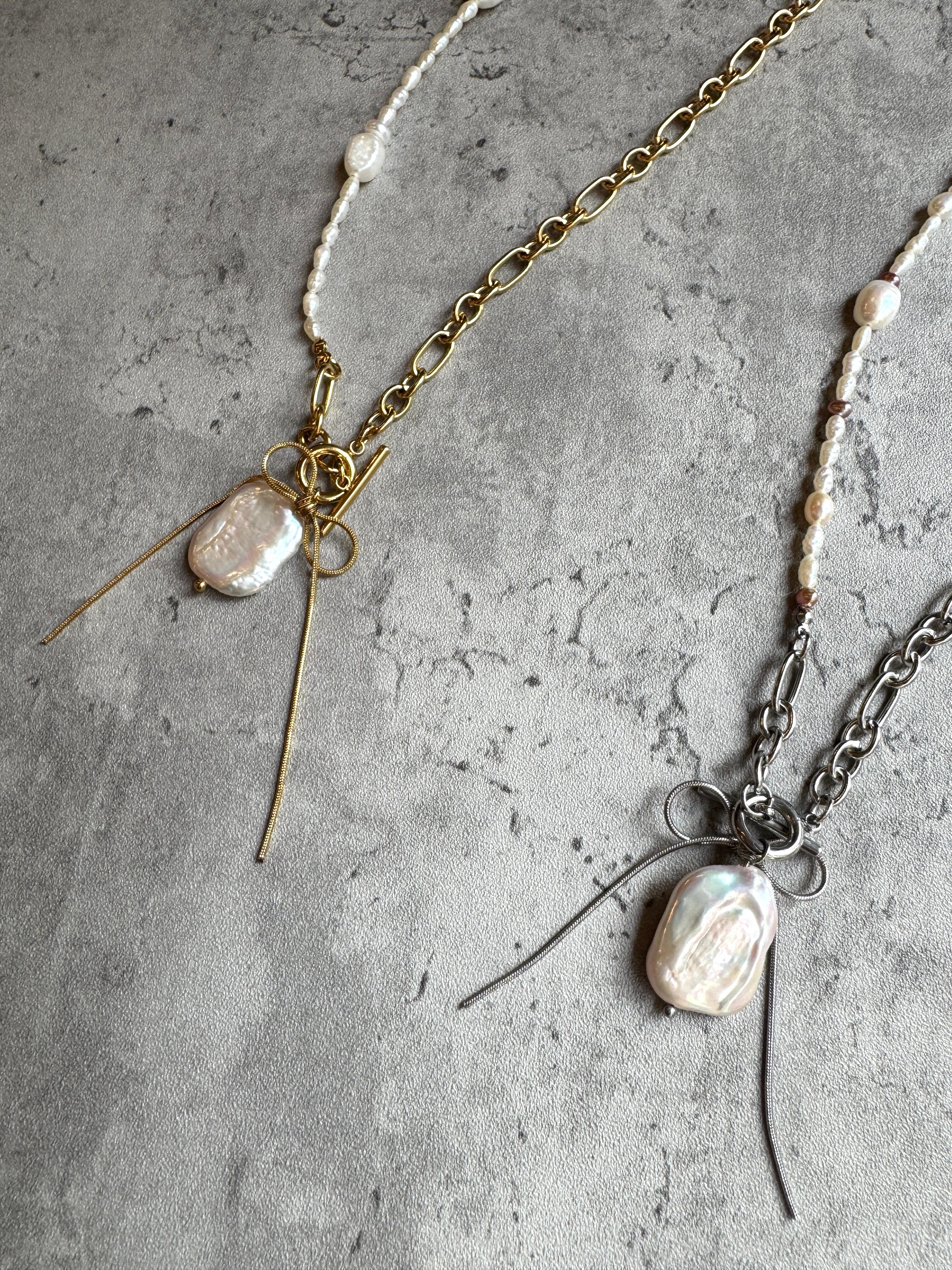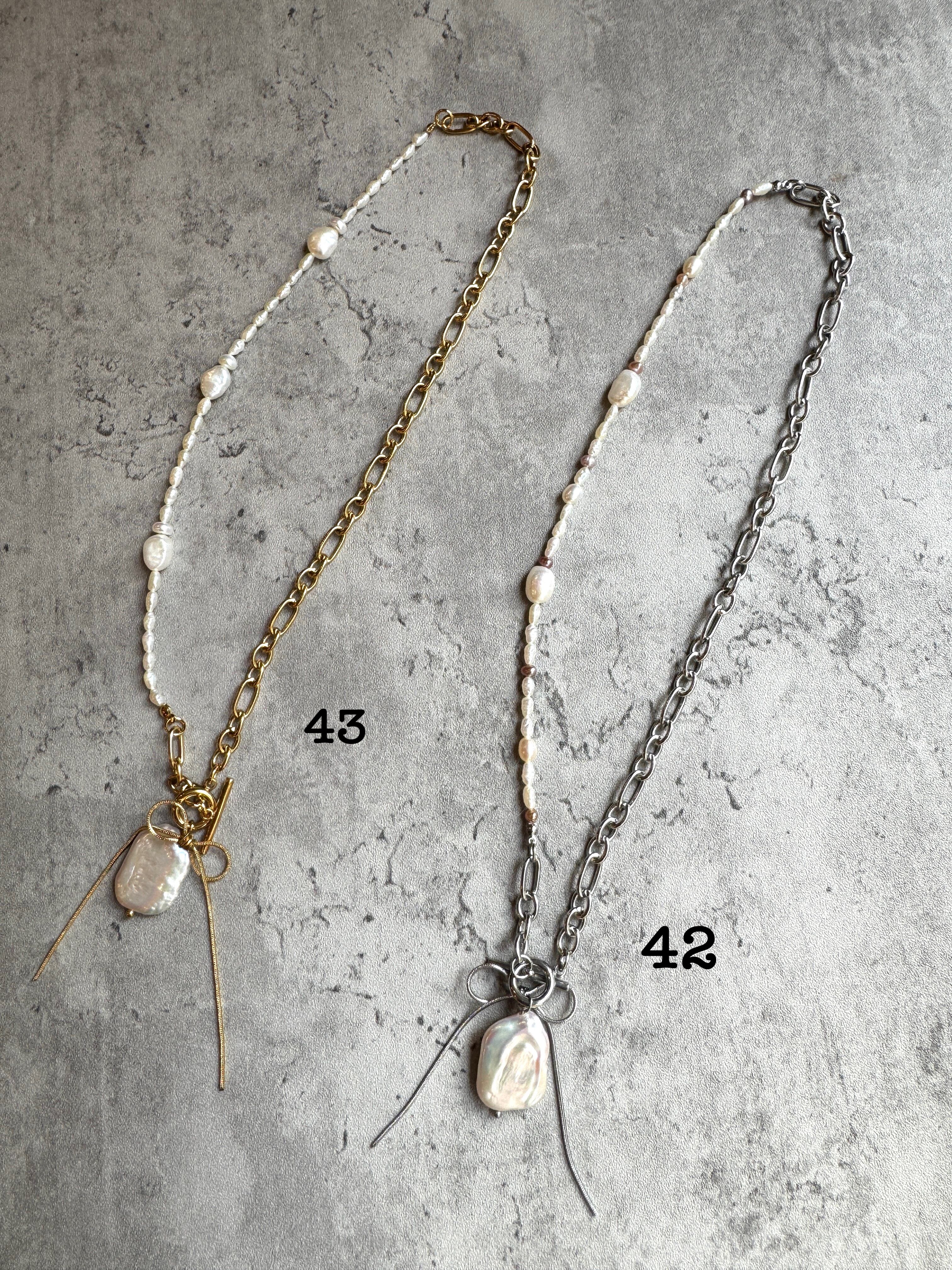 ■【凛】ネックレス 42・43は、存在感のある太めのチェーンと女らしいパールを絶妙に組み合わせた、洗練されたデザインのネックレスです。日常のカジュアルなお出かけから、特別なイベントまで、あなたの魅力を引き立て、周囲の視線を惹きつけるアイテムとなります。