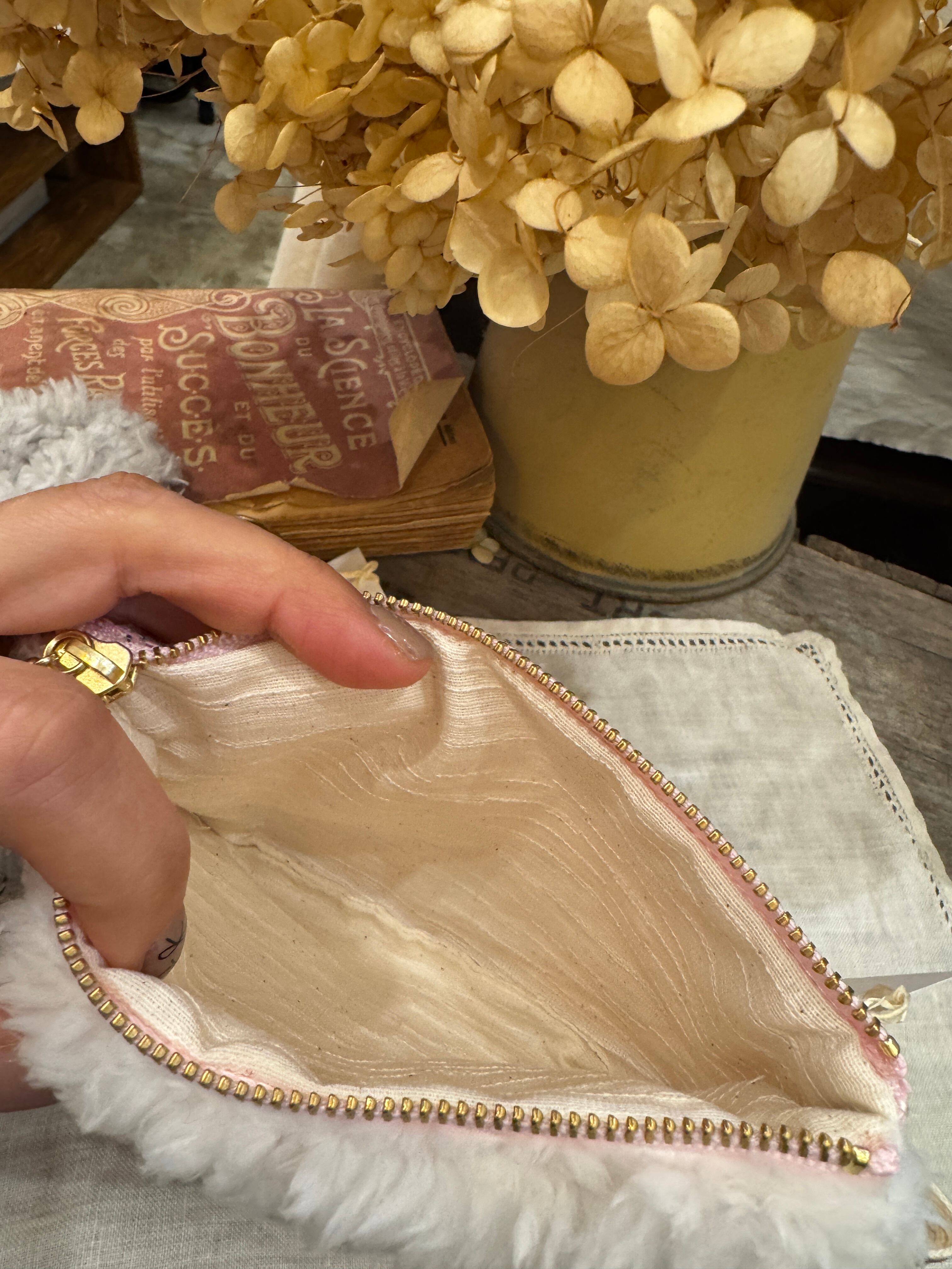 本商品の特徴は、片面がツイード、もう片面がファーと異素材が見事に調和している点です。14cmのファスナーを使用しているため、小物をしっかり収納でき、さらに取り出しやすさにも配慮されています。自分へのご褒美や、大切な方への贈り物としても、多くの方に喜ばれるアイテムです。