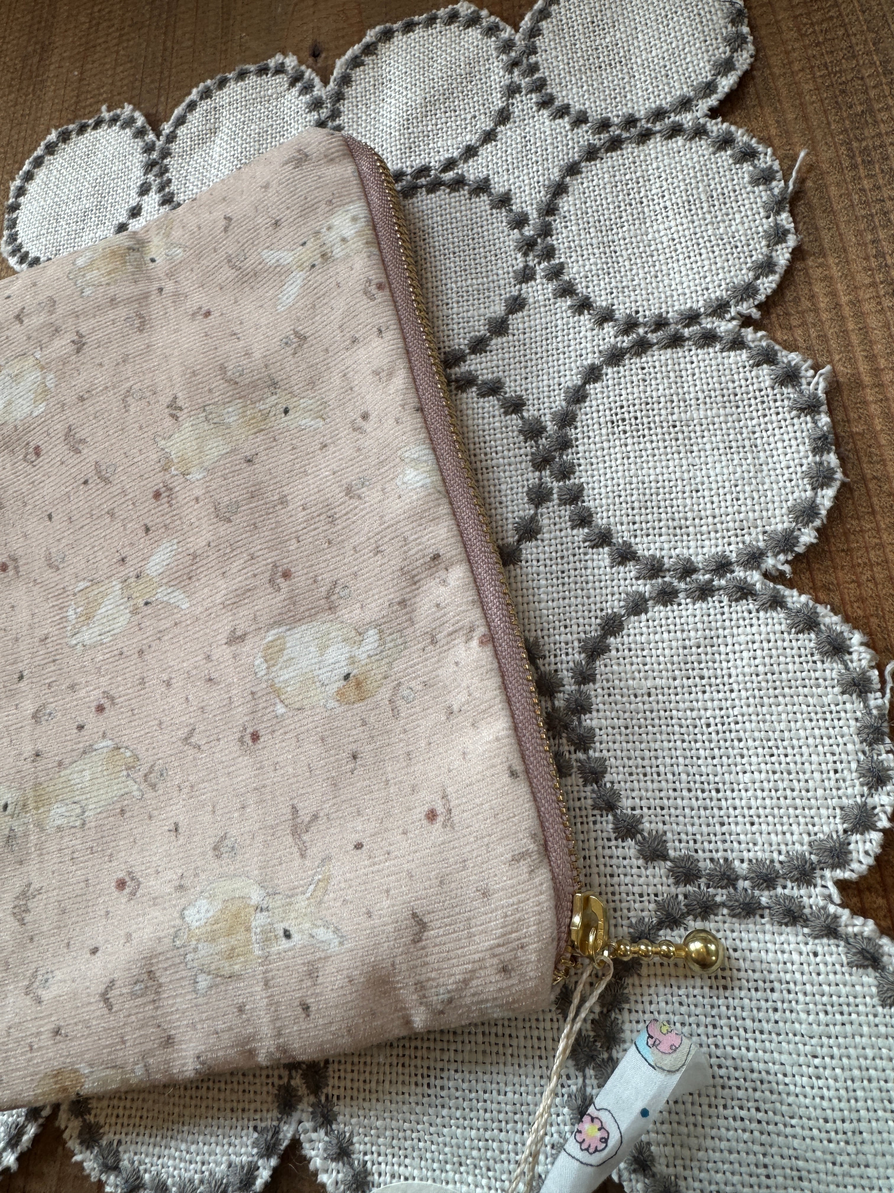 韓国生地のファスナーポーチ(うさぎ)が登場です!可愛らしいうさぎのデザインが特徴で、普段のスタイルに楽しいアクセントを加えてくれます。