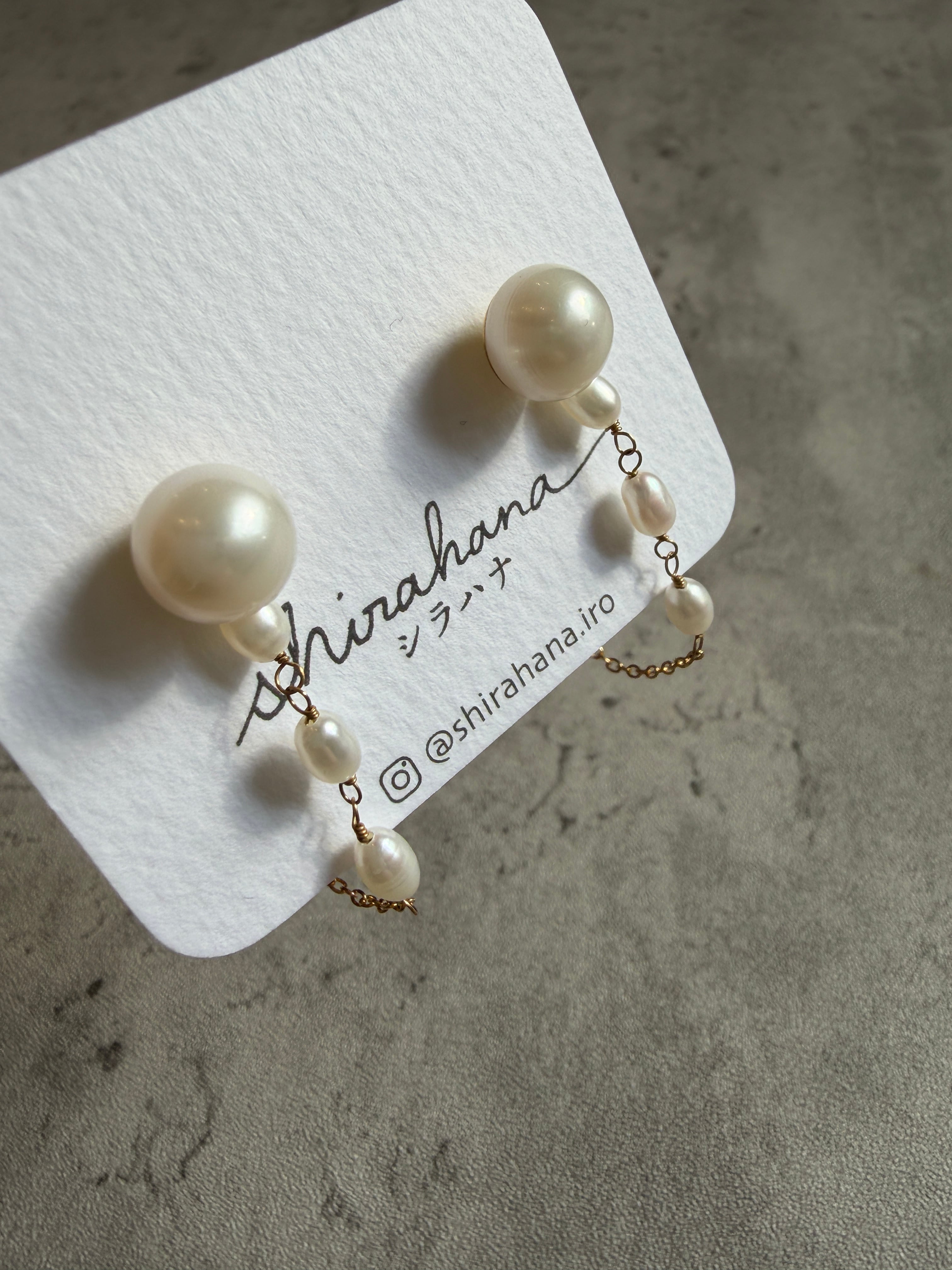85・9mmパールパールチェーンキャッチピアス